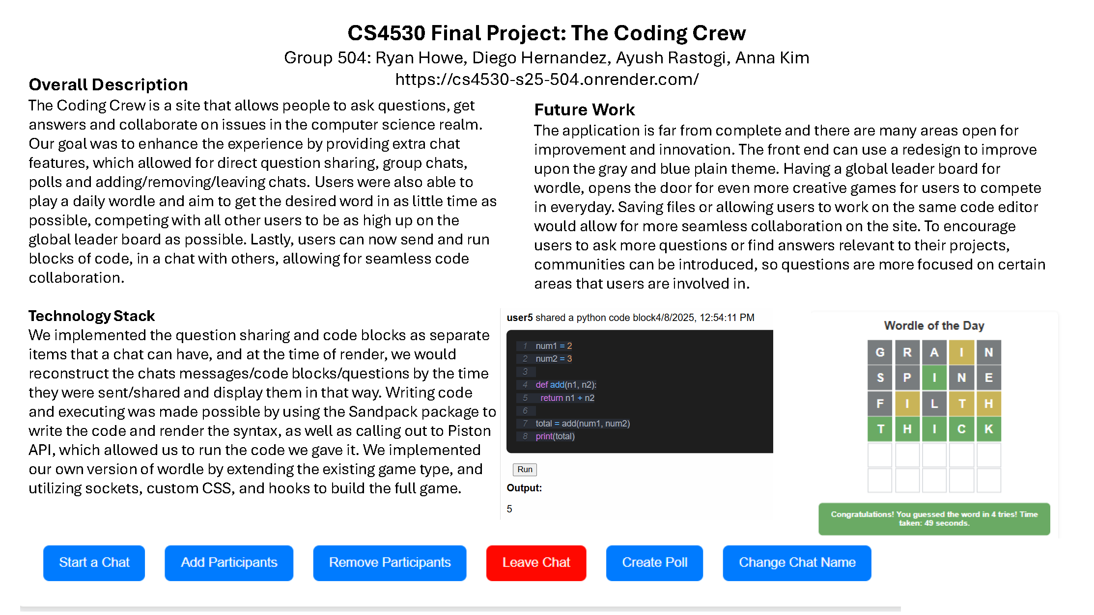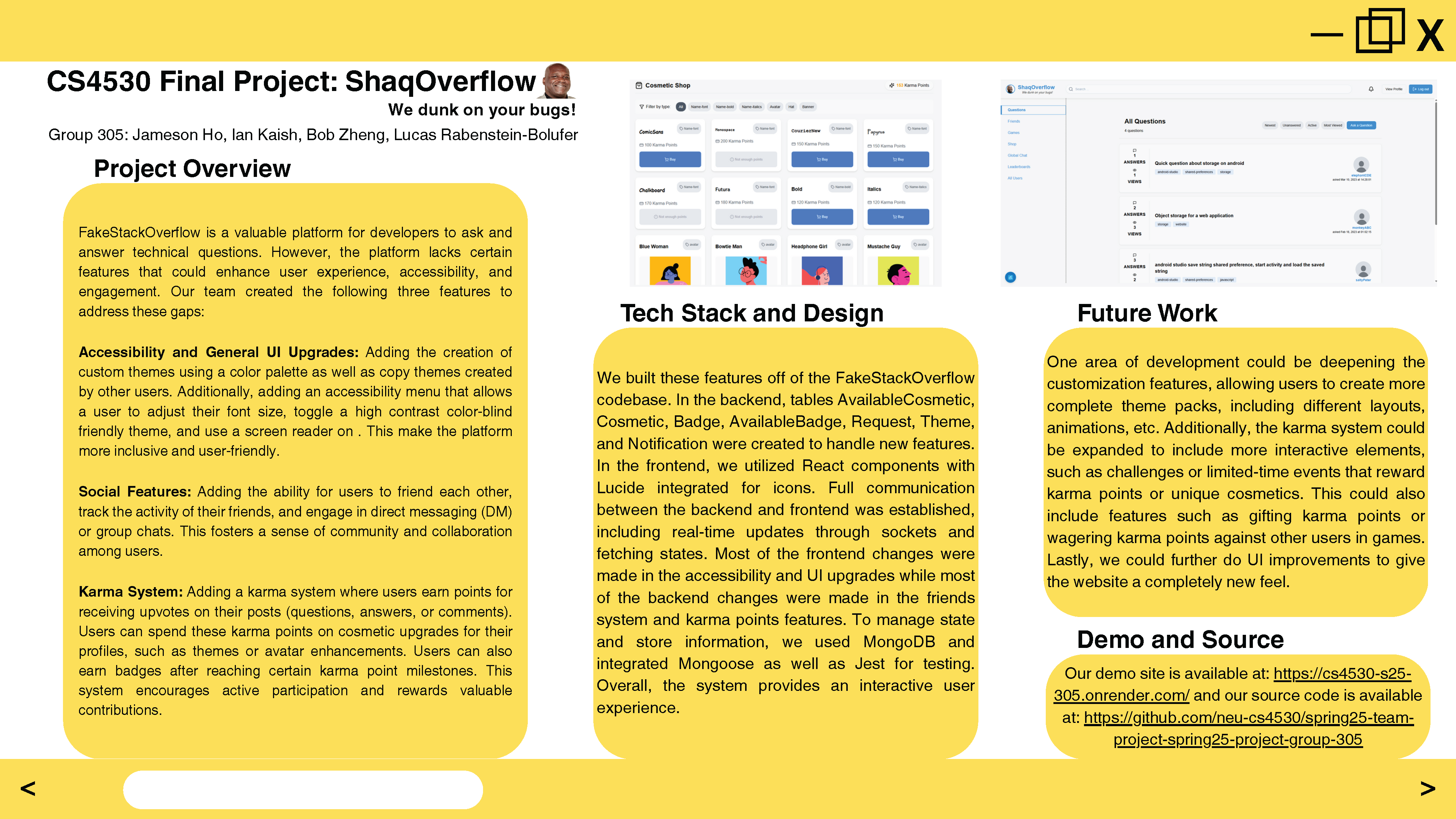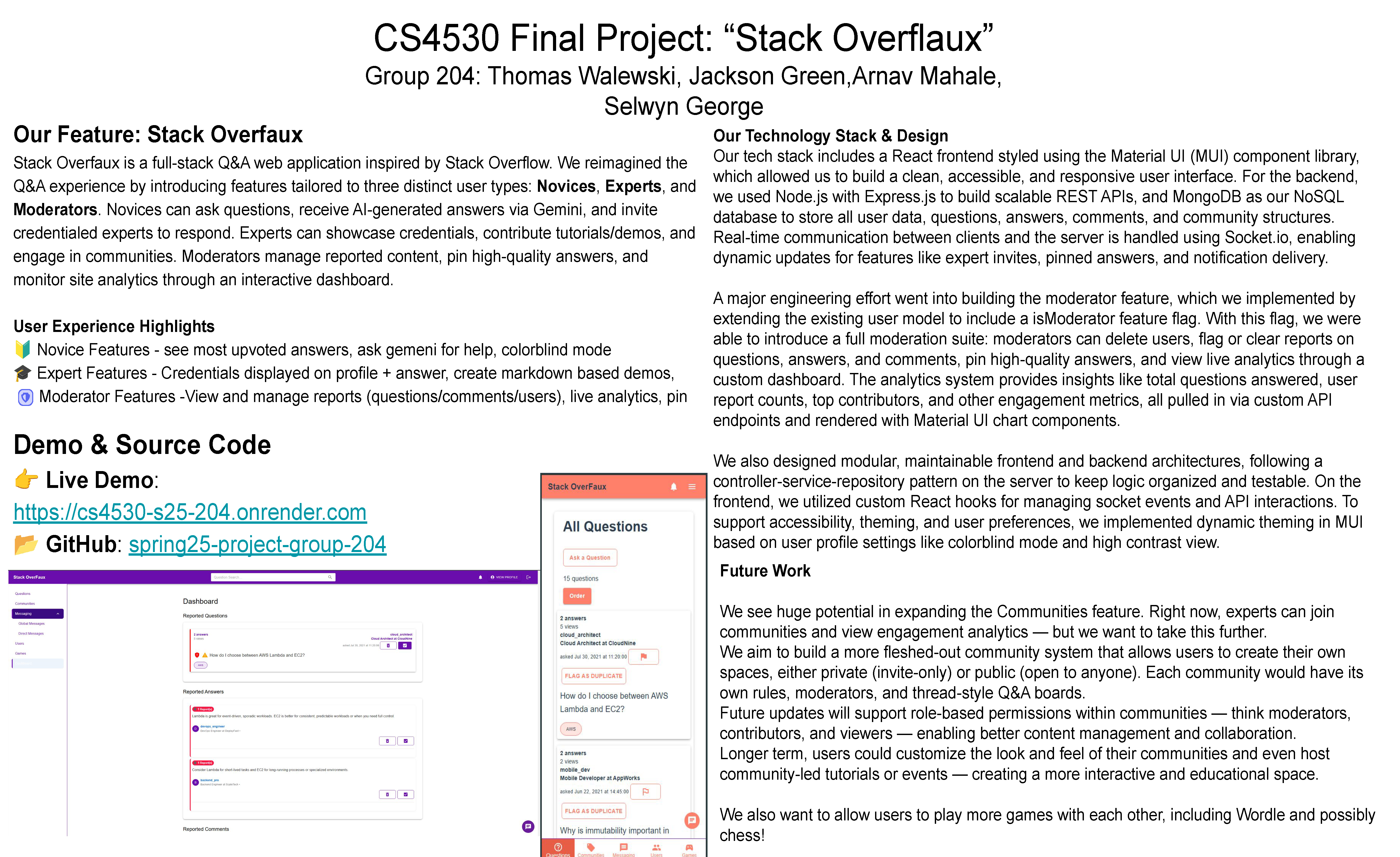Many students opted-in to publicly share their project poster. This page contains each student group’s poster, which you can view by clicking on the thumbnail. The full size poster contains clickable links to the project’s GitHub repository and the project’s demo.
